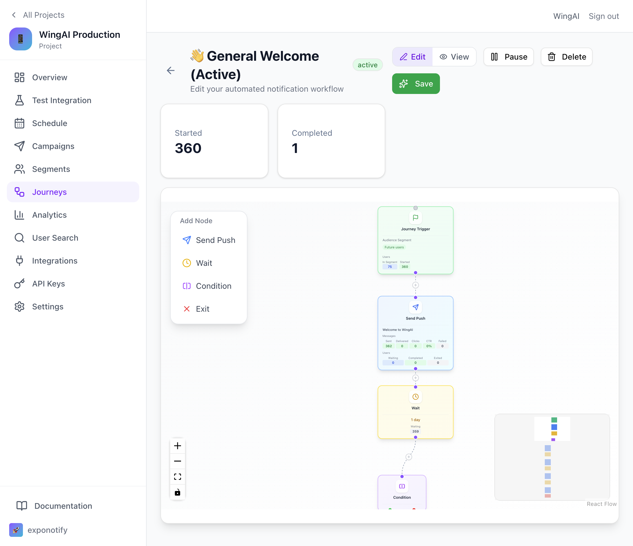 Build multi-step notification flows with our visual journey builder. Onboarding, re-engagement, and more.